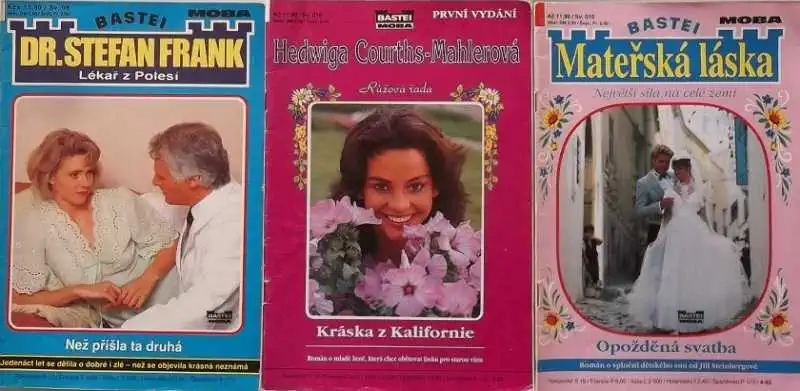 Tenké časopisové romantické knihy.