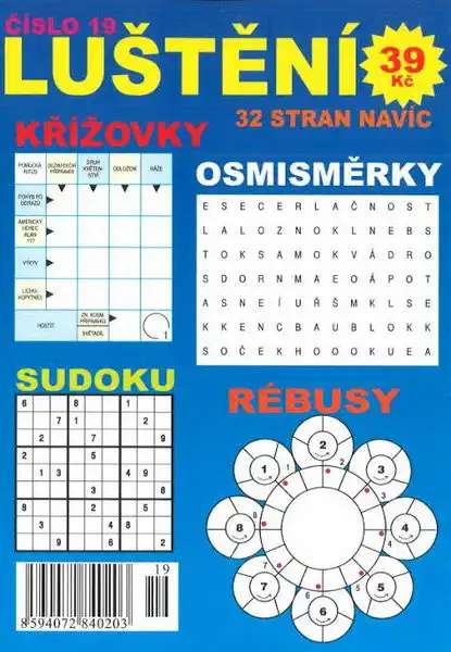 Křížovky, osmisměrky, sudoku a rébusy.