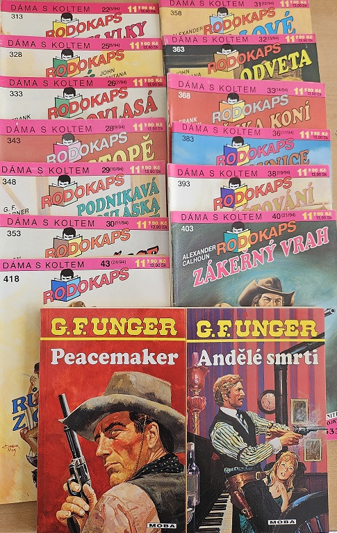 Kolekce časopisů Rodokaps - Dáma s koltem , G.F.Unger Peacermaker, Andělé smrti /bazarové zboží/ 15ks